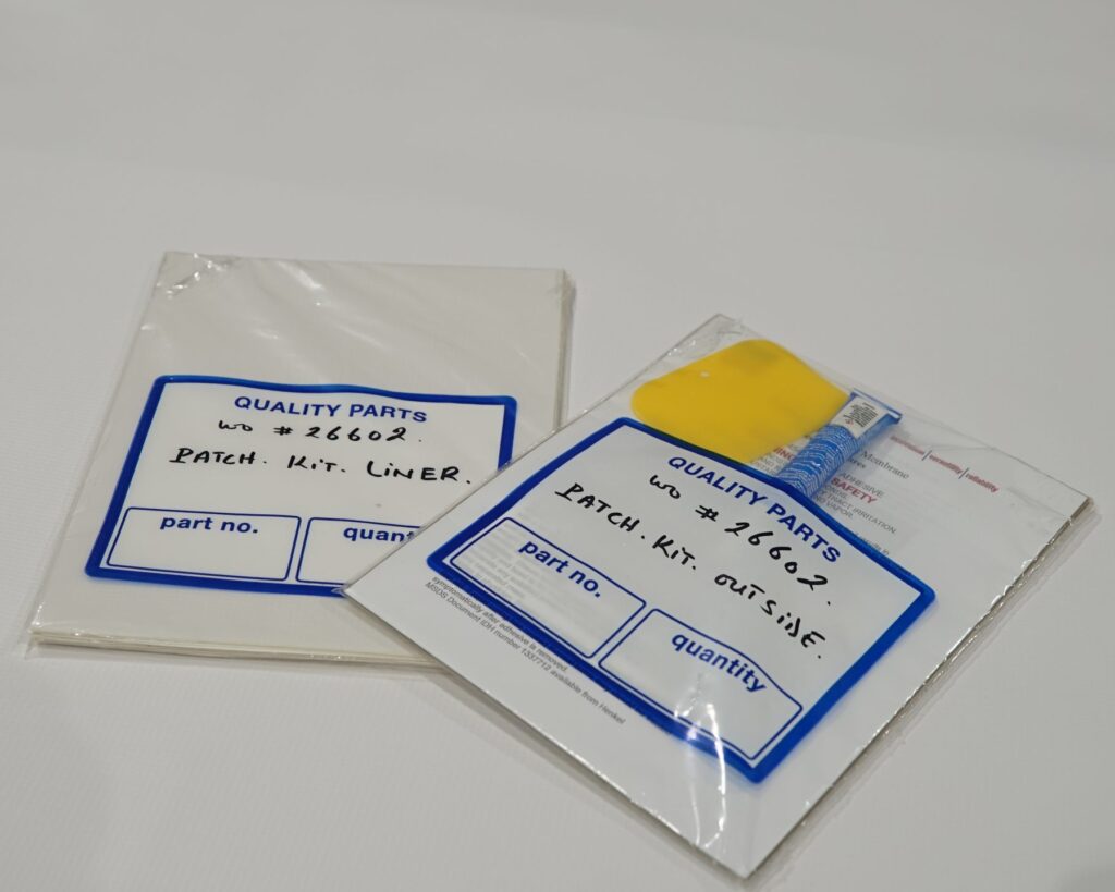 • The interior acrylic (regular) membrane is repaired using a peel-and-stick type of adhesive patch. Download detailed instructions here.