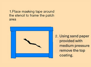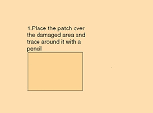 Step 3: Mark the area that needs patching. With a pencil, and using the patch as a template, draw around the whole patch. Place masking tape around the stencil to frame the patch area. (Figures 2-4).