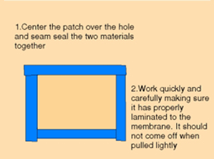 • If membrane damage occurs, patches can be applied with adhesive or heat-welded in place.